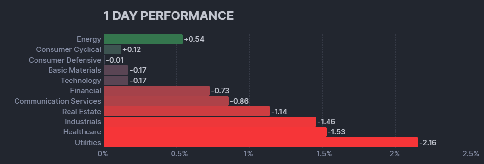 昨日のセクター別パフォーマンスは2セクターが上昇、9セクターが下落した1日となりました。
