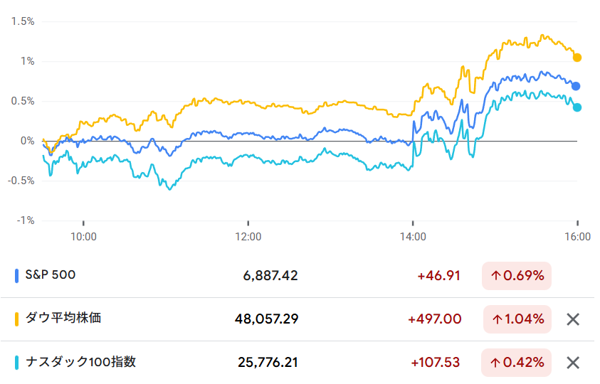 ・ダウ平均 …+1.05%