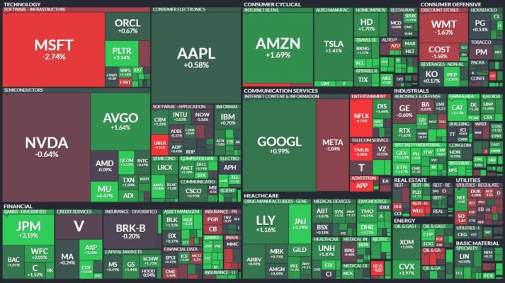 昨日のS&P500のヒートマップを眺めると、多くの銘柄が上昇したことが分かります。