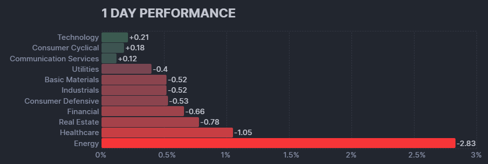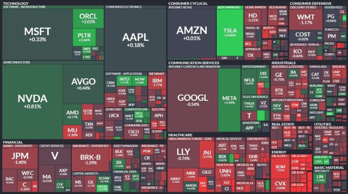 昨日のS&P500のヒートマップを眺めると、下落した銘柄の方が多かったことが分かります。