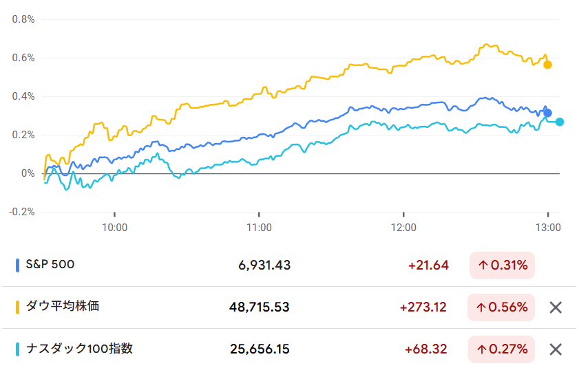 プレマーケットでは売られていた相場は、マーケットがオープンするとダウを中心に上昇していきました。