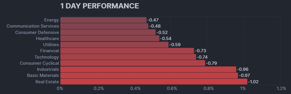 昨日のセクター別パフォーマンスは久しぶりに11セクターすべてが下落した1日となりました。