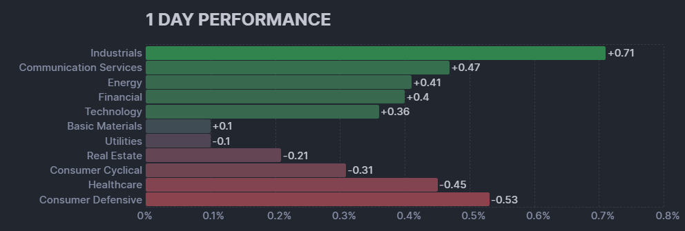 昨日のセクター別パフォーマンスは6セクターが上昇、5セクターが下落した1日となりました。