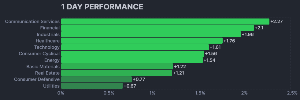 昨日のセクター別パフォーマンスは11セクターすべてが上昇した1日となりました。