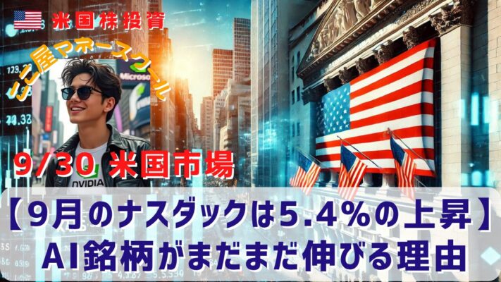 9月のS&P500は+3.53%、ダウは+1.87%、NASDAQ100は5.40%上げて、5ヶ月連続の上昇となりました。