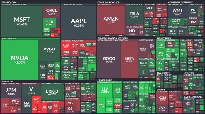 昨日のS&P500のヒートマップを眺めると、ほとんどの銘柄が上昇したことがわかります。