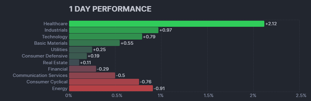 昨日のセクター別パフォーマンスは7セクターが上昇、4セクターが下落した1日となりました。