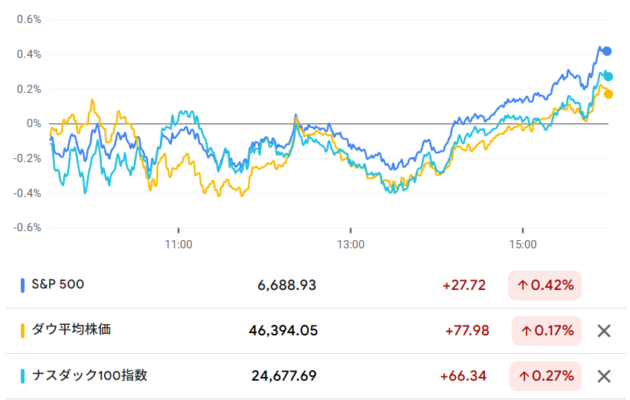 昨日のS&P500は+0.41%上昇して、終値では6,688に上げました。