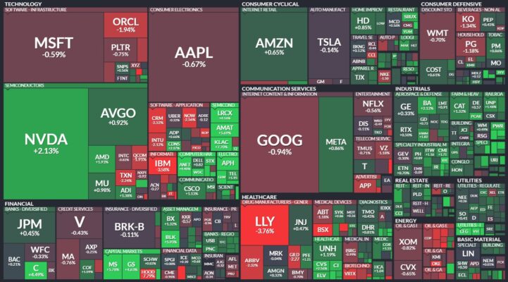 昨日のS&P500のヒートマップを眺めると、上昇した銘柄の方が多かったように見えます。