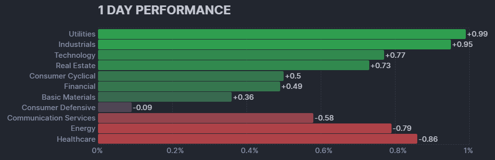 一方で、公益事業や資本財といったセクターは1%近い上昇をしています。
