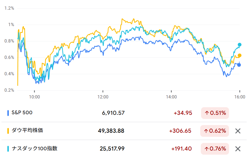 グリーンランドを巡る地政学的リスクが和らぎ、ハイテク株を中心に市場に資金が戻ってきたようです。