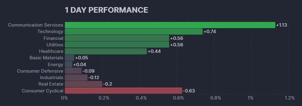 昨日のセクター別パフォーマンスは7セクターが上昇、4セクターが下落した1日となりました。