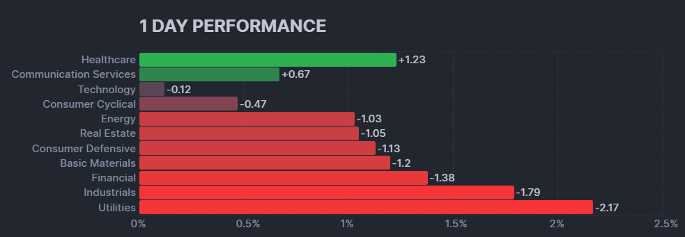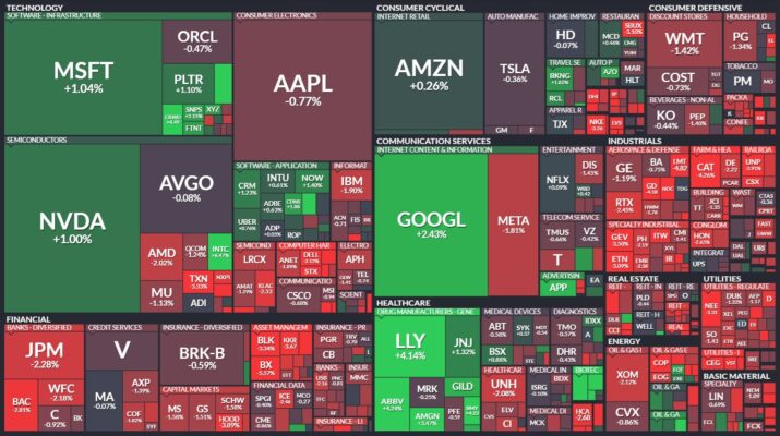 昨日のS&P500のヒートマップを眺めると、下げた銘柄の方が多かったことが分かります。
