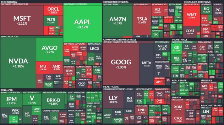 昨日のS&P500のヒートマップを眺めると、上昇した銘柄の方が多かったことがわかります。