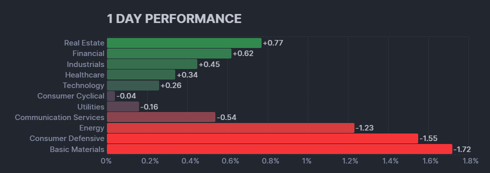 昨日のセクター別パフォーマンスは5セクターが上昇、6セクターが下落した1日となりました。