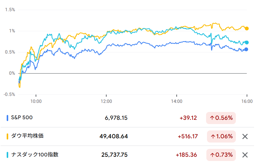プレマーケットでは売られていた相場は、マーケットがオープンすると3指数ともに上昇していきました。
