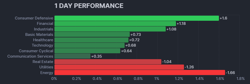 昨日のS&P500のヒートマップを眺めると、多くの銘柄が上昇したことがわかります。