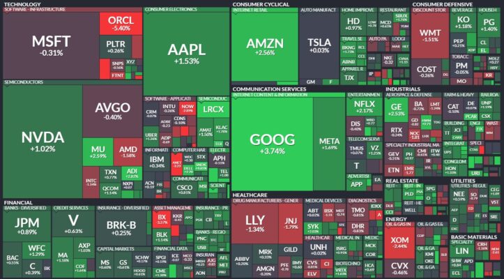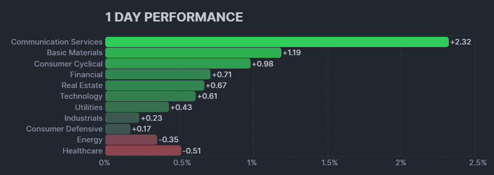 昨日のS&P500のヒートマップを眺めると、多くの銘柄が上げた1日ということが分かります。