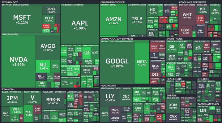 昨日のS&P500のヒートマップを眺めると、ほとんどの銘柄が上昇したことが分かります。