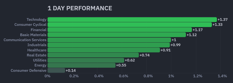 昨日のセクター別パフォーマンスは11セクターすべてが上昇した1日となりました。