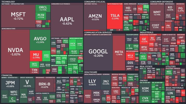 昨日のS&P500のヒートマップを眺めると、ほとんどの銘柄が大きく下落したことが分かります。