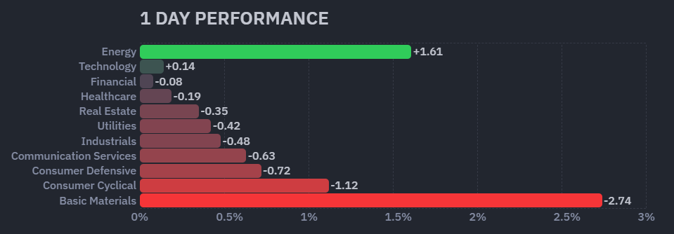 昨日のセクター別パフォーマンスは2セクターが上昇、9セクターが下落した1日となりました。