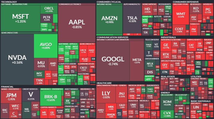 昨日のS&P500のヒートマップを眺めると、多くの銘柄が下落していることが分かります。