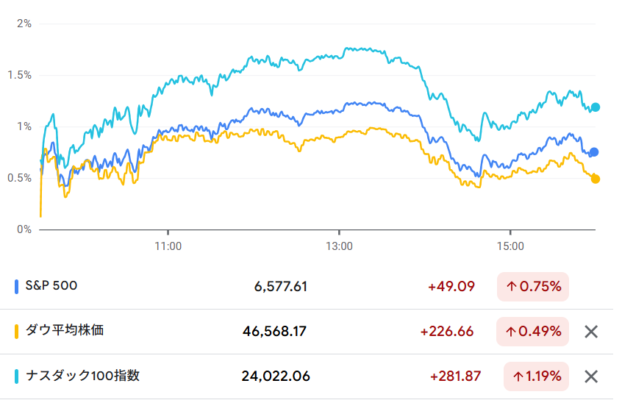 米主要3指数の値動き