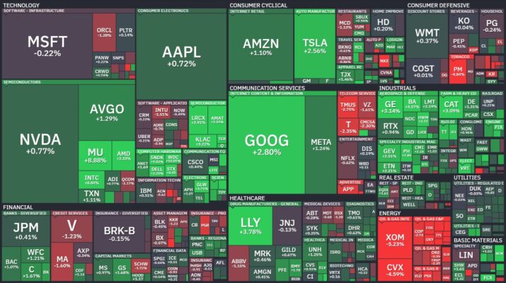 昨日のS&P500のヒートマップを眺めると、上昇した銘柄の方が多かったことがわかります。