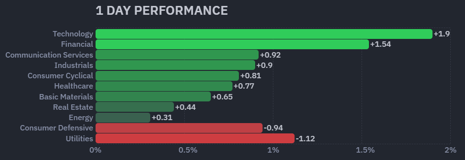 情報技術と金融が1%を超える大きな上昇。