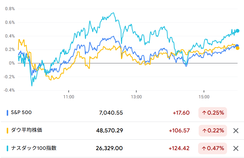 昨日の米国市場は上昇して、前日に続けて高値を更新しました。