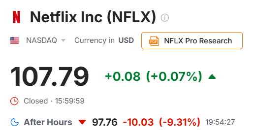 アフターで決算発表のあったネットフリックスは、業績見通しが市場予想を下回ったことで時間外で株価を▲9%以上も下げています。
