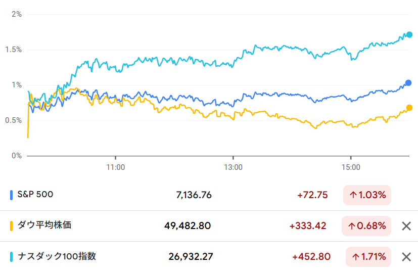 昨日の米国市場は大きく上昇しました。