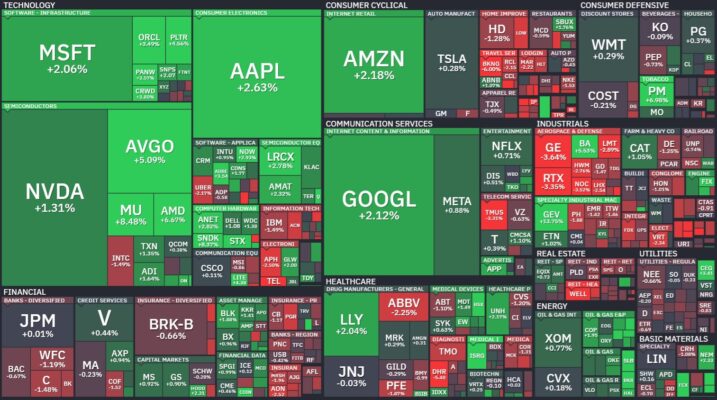 昨日のS&P500のヒートマップを眺めると、上昇した銘柄のほうが多かったことが分かります。