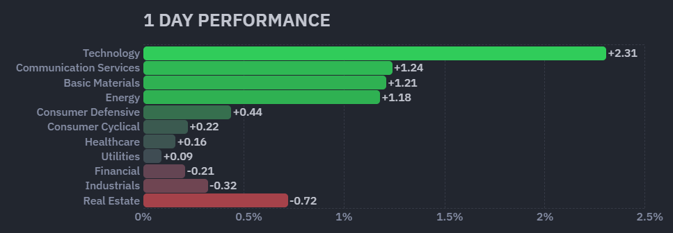 昨日のセクター別パフォーマンスは8セクターが上昇、3セクターが下落した1日となりました。