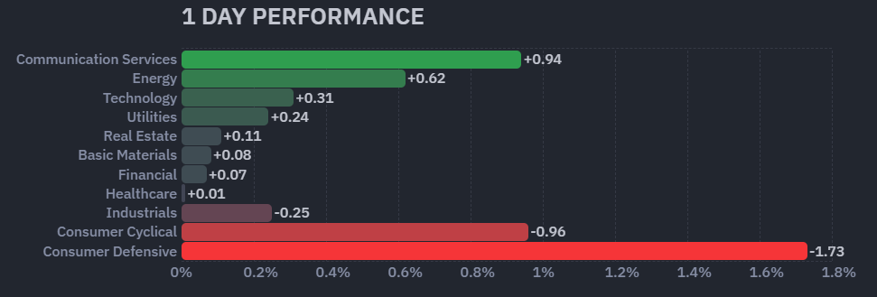昨日のセクター別パフォーマンスは8セクターが上昇、3セクターが下落した1日となりました。