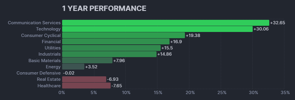 【1年】セクター別パフォーマンス