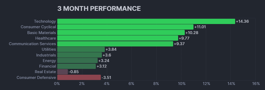 【3ヶ月】セクター別パフォーマンス