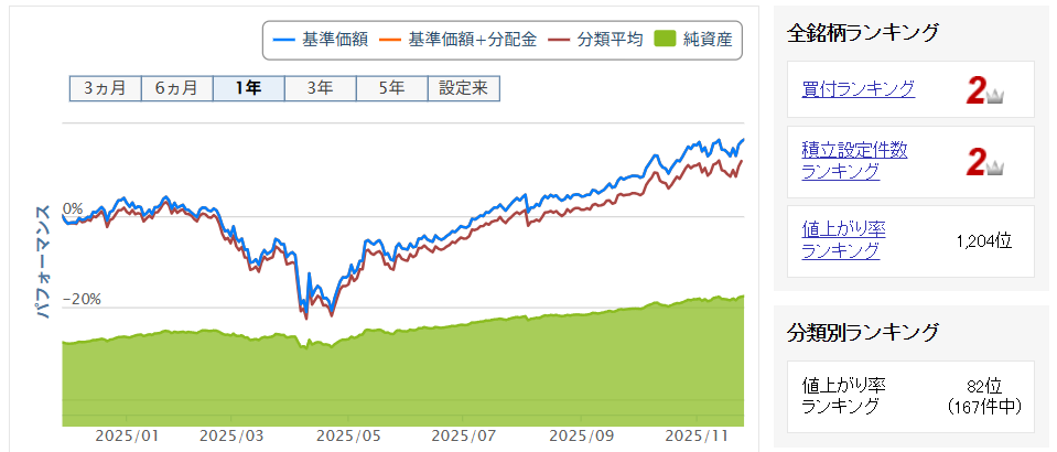 楽天証券の『買付ランキング』と『積立設定件数ランキング』でも人気ランキング上位の銘柄ですね。