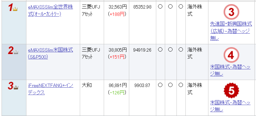 やはりNISAでもオルカンとS&P500が人気ですが、FANG+が3位にくい込んできましたね。