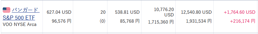 (VOOとVONGは旧一般NISAで購入していたので、非課税期間が終了して特定口座に移管されています。)