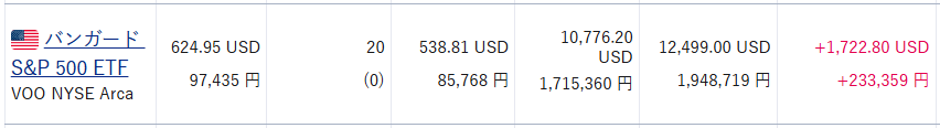 (VOOとVONGは旧一般NISAで購入していたので、非課税期間が終了して特定口座に移管されています。)
