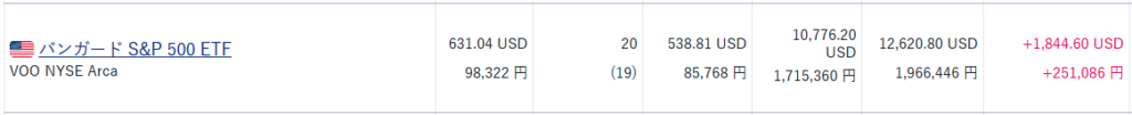 (VOOとVONGは旧一般NISAで購入していたので、非課税期間が終了して特定口座に移管されています。)